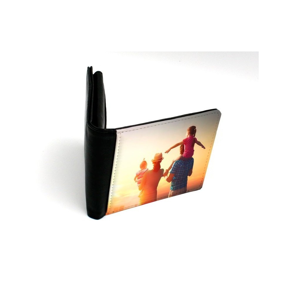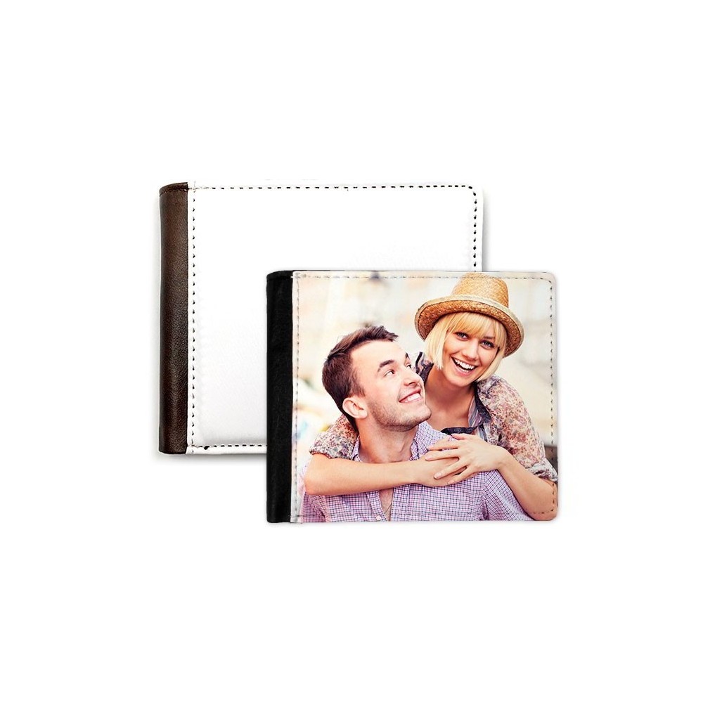 Stylish men's wallet made of artificial leather in an elegant brown color. You can place your own photo, logo, text or graphics on the front, making an ordinary wallet an original personal accessory or a great gift.