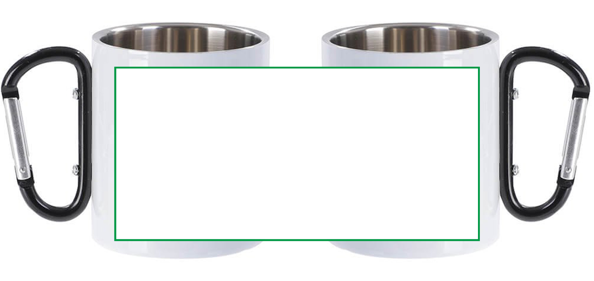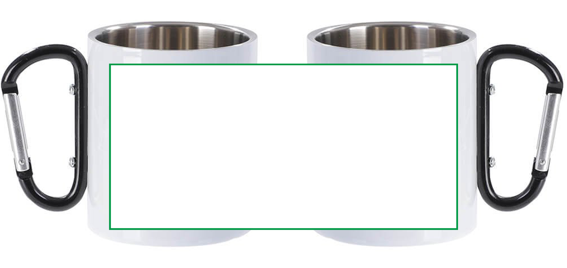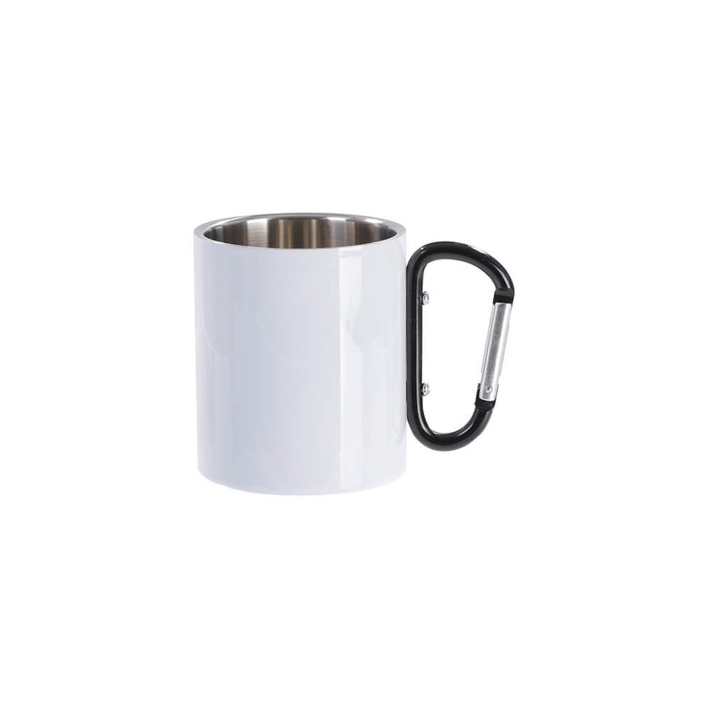 Metalna šalica 300 ml s karabinerom, bijela, s vašim vlastitim printom