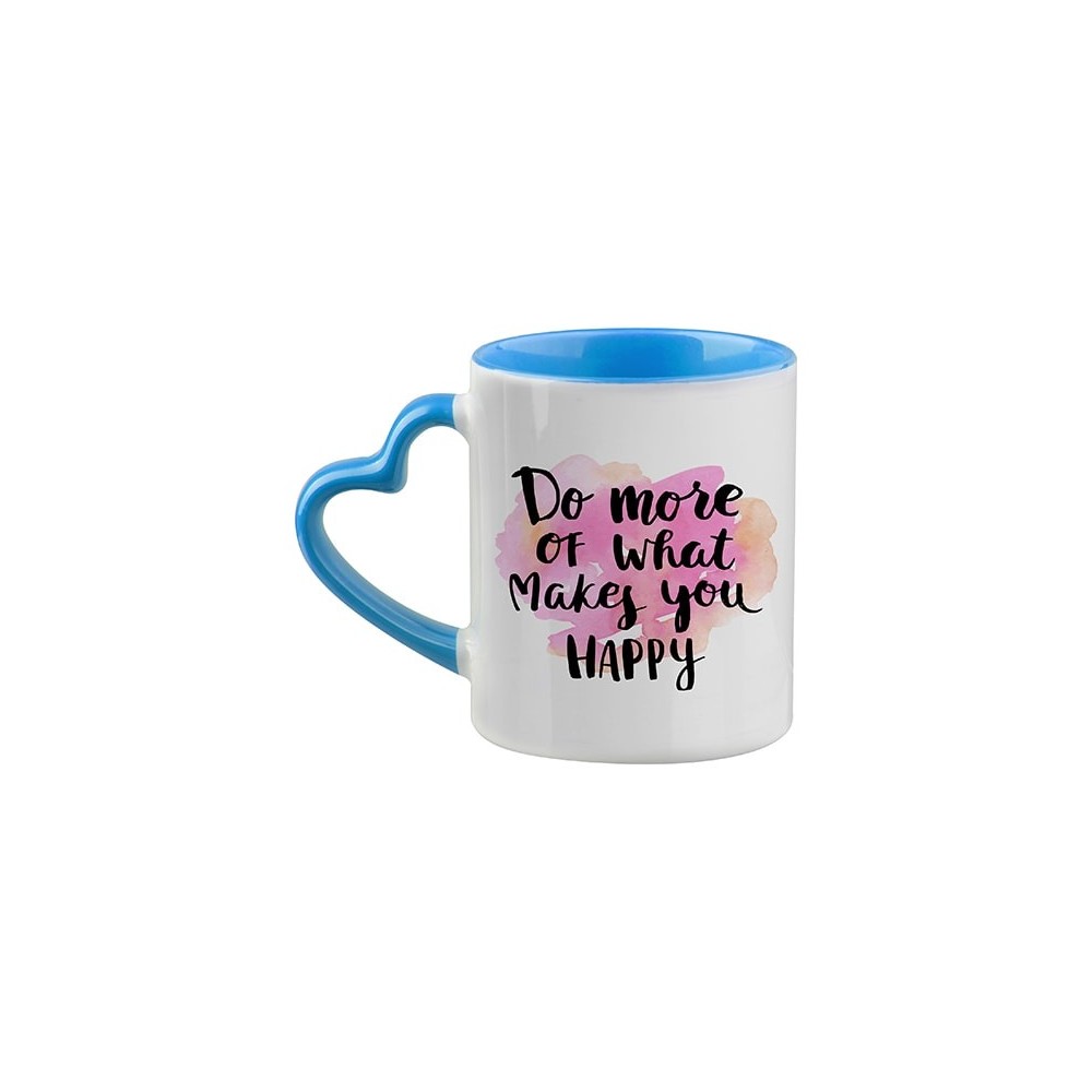 Originalna keramička šalica na koju možete otisnuti vlastitu fotografiju, tekst ili grafiku. Zahvaljujući šarenoj unutrašnjosti i ručki u obliku srca, izgleda elegantno i romantično - idealna kao poklon za vašeg partnera, obitelj ili bliske prijatelje.